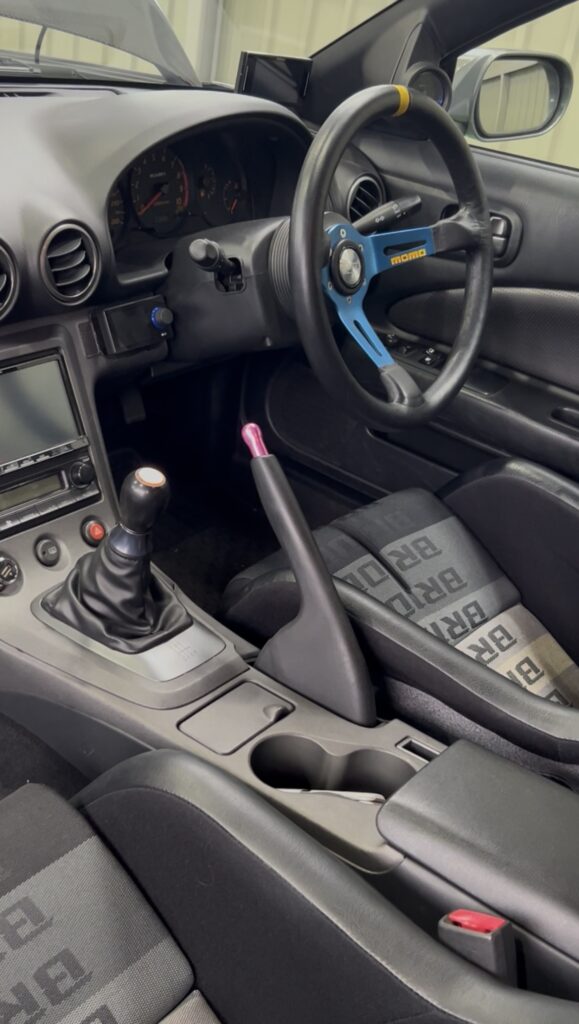 運転席のみバケットシートに交換、ハンドルもmomoへ交換いたしました。